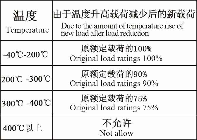 12.如在高温环境下使用,载荷的减少应考虑,具体见下表: