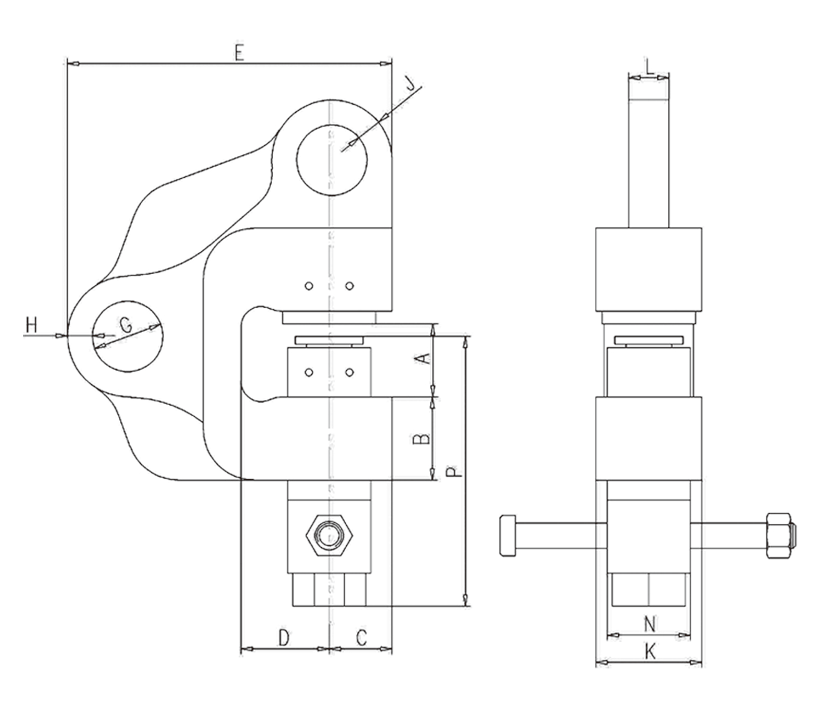 特点: 1、不仅可以竖拉,横拉,还可替代向上拉用的吊环或者压力加工时的牵引物等。 2、钳体采用优质合金钢模锻而成,经过热处理,性能稳定,具有高强,高韧性。 3、螺栓螺纹采